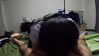 "Cute Japanese college slut with hot pantyhose teasing her big cock teacher to fuck her wet pussy"