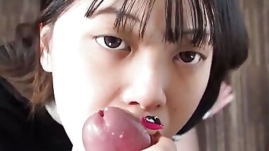 "JAPANESE BITCH STICKS STUFF INTO HIS PUSSY AFTER SUCKING"