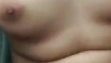She rubs her tits and plays with her nipples over her clothes. Tittyfuck with big tits is too erotic.