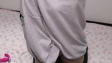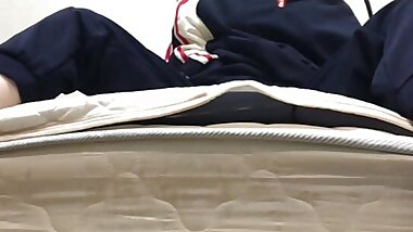 Asian student plays with her pussy