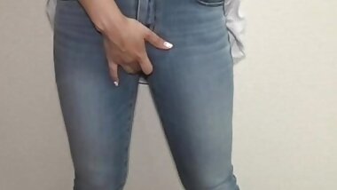 "Cute girl in tight jeans stains her jeans with masturbation juice."