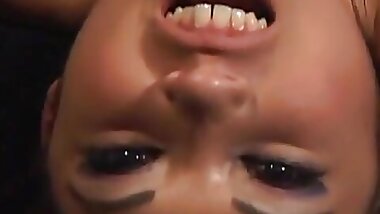 "Big titty babe gets drenched in cum from a 7 guy gangbang"