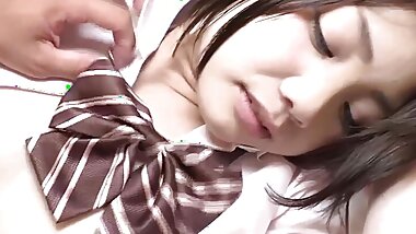 Japanese Girl gives a Guy a Lotion Torture Wearing a Sailor Skirt and Knitted Clothes.
