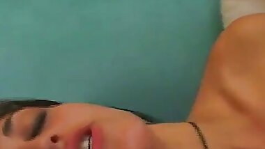 "Giggly Asian cutie adores feeling his dick release hot jizz inside her pink Asian slit"