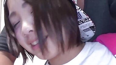 "Round ass Asian teenie homemade blowjob with rubbing his dick on her pussy"