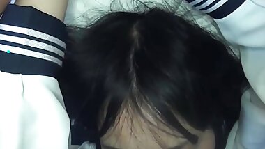 "POV cute 18yo Japanese schoolgirl gets a huge facial after she sucks her stepdads dick to thank him for her new phone"