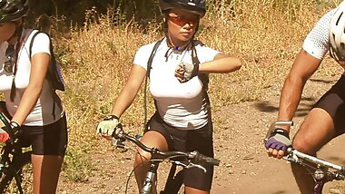 "The three brunette hotties enjoy sharing his huge Asian cock during hardcore group sex session"