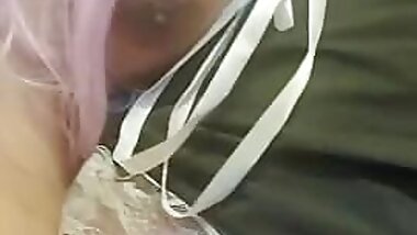 "Beautiful Indian sissy playing with boobs and eating own cum"